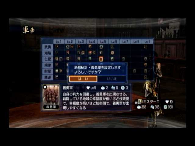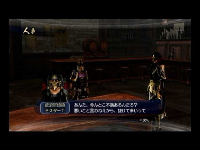 ちなみに武将編時は胸と腰の着色を反転、また頭に仮面を装備。己の私情を押し殺し、徹底的にフィクサー(というのか)を