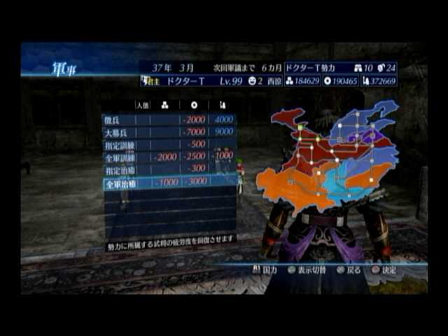 しかし放浪軍頭領が3軍団も参戦してくれた事で、資源・資金・兵力がどの勢力よりも強い最強状態に至ったという。軍議が入る
