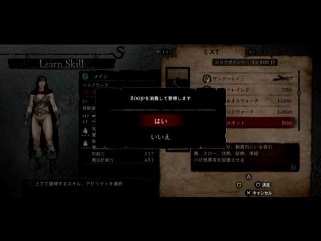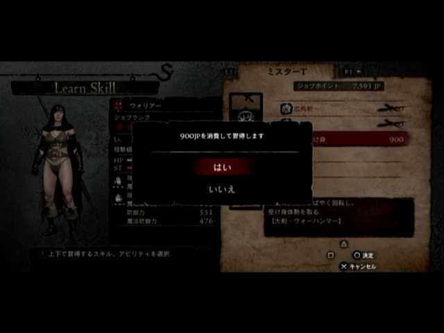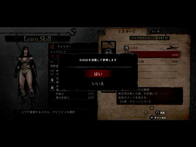 後は各種のスキル習得ですが、とりあえず覚者さんをウォリアーに、マイポーンさんをメイジにしてジョブ稼ぎをば。特に覚者