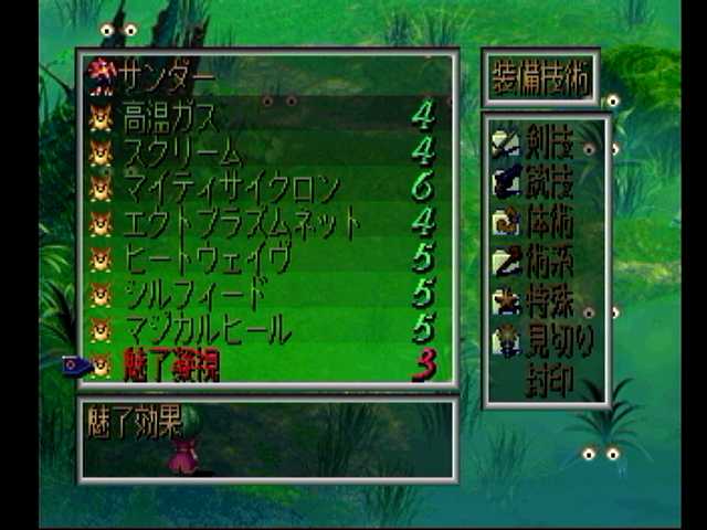選んでしまい倒せなくなる怖れもあるため外しました><; アセルスさんと妖魔郡の術、ファッシネイションと幻夢の一撃。