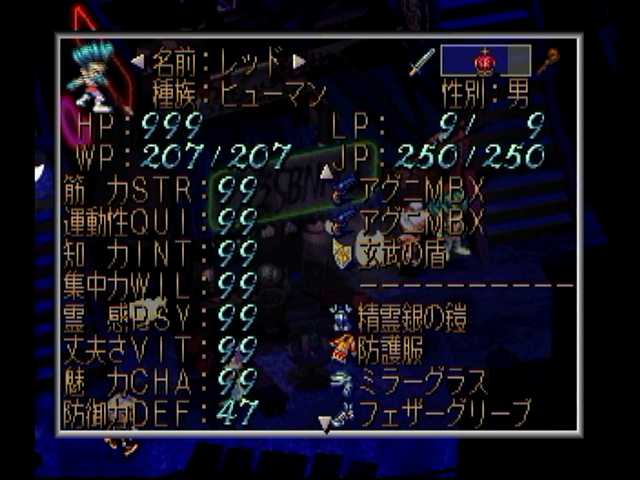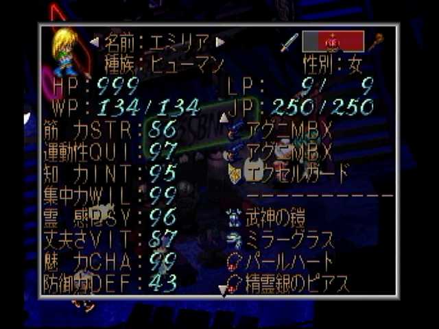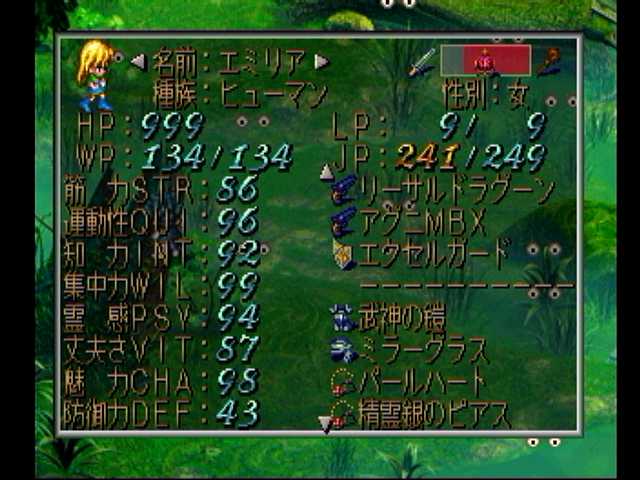 レッド編改・沼地ハメ10日目。エミリアさんのJPと魅力がカンストに@@b ただ知力と霊感がカンストしておらず、体術に
