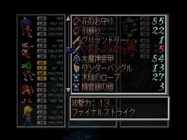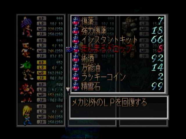 補佐的ならシャドウダガーを持たせての影縛りの連発。装備品により運動性を99にして、知力も99にしてWP消費プログラム